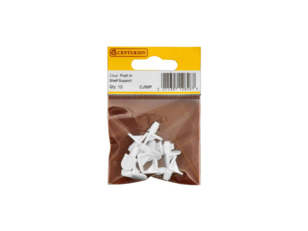 For light duty or narrow span shelving. Especially good for fitting in cupboards. Use in chipboard, plywood, thin batten etc. Made of plastic. To fit 5mm hole. Plastic shelf supports are ideal for kitchen or bedroom cupboard shelves and similar applications. Suitable for an existing 5mm diameter hole they have a simple push in installation.