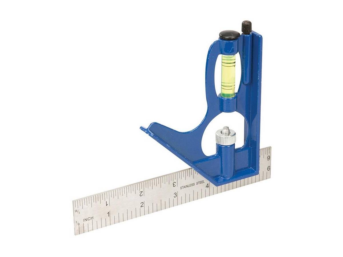 - knurled adjustment screw and built-in spirit level with scriber.