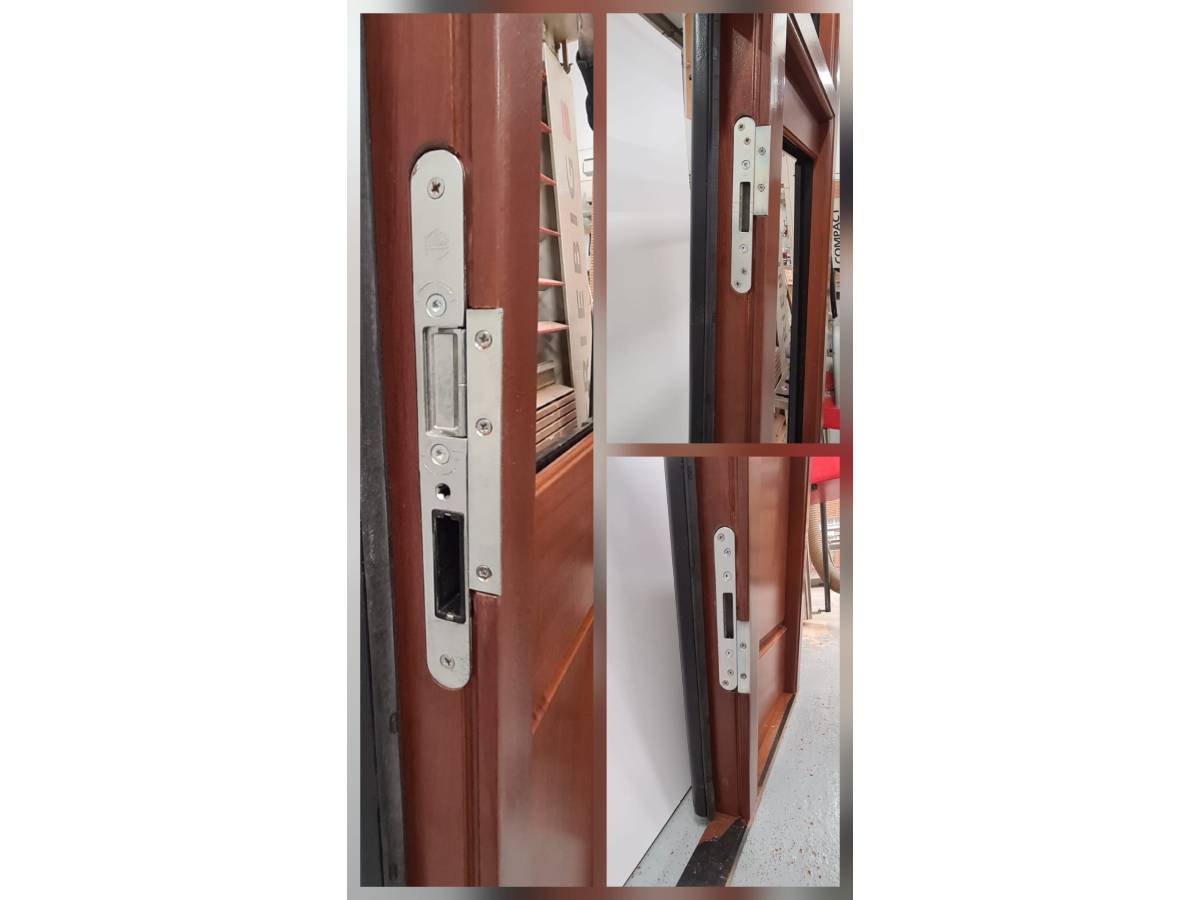 - We have had to make minor aletrations on the frame as the ironomngery had been done for the wrong handing, so please view the photos to see that we have had to splice in hardwood where the hinges had been placed and the keeps on the opposite side. This has no detremental effect and door swings and works properly.