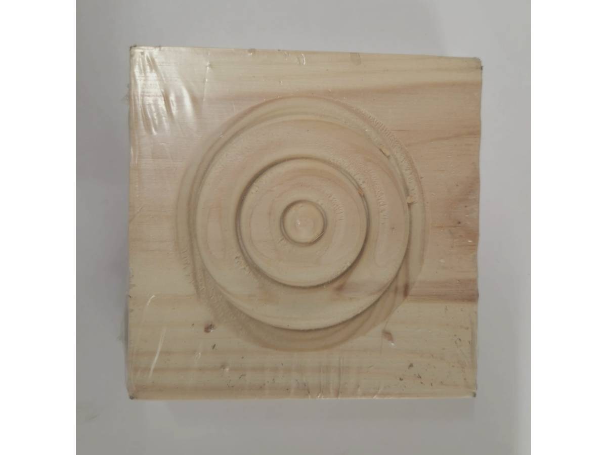This item is for one architrave block. They are used as an alternative to the mitering of architrave around a door casing. They are made from Pine and measure 85mm x 85mm x 22mm.