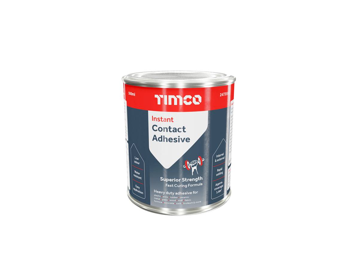 A premium grade high strength rubber based contact adhesive suitable for internal and external applications. The easily spreadable liquid formulation allows for an even and uniform bond on large surfaces such as flat roofs, laminate sheets and flooring applications. Ideal for humid and damp environments such as kitchens and bathrooms.