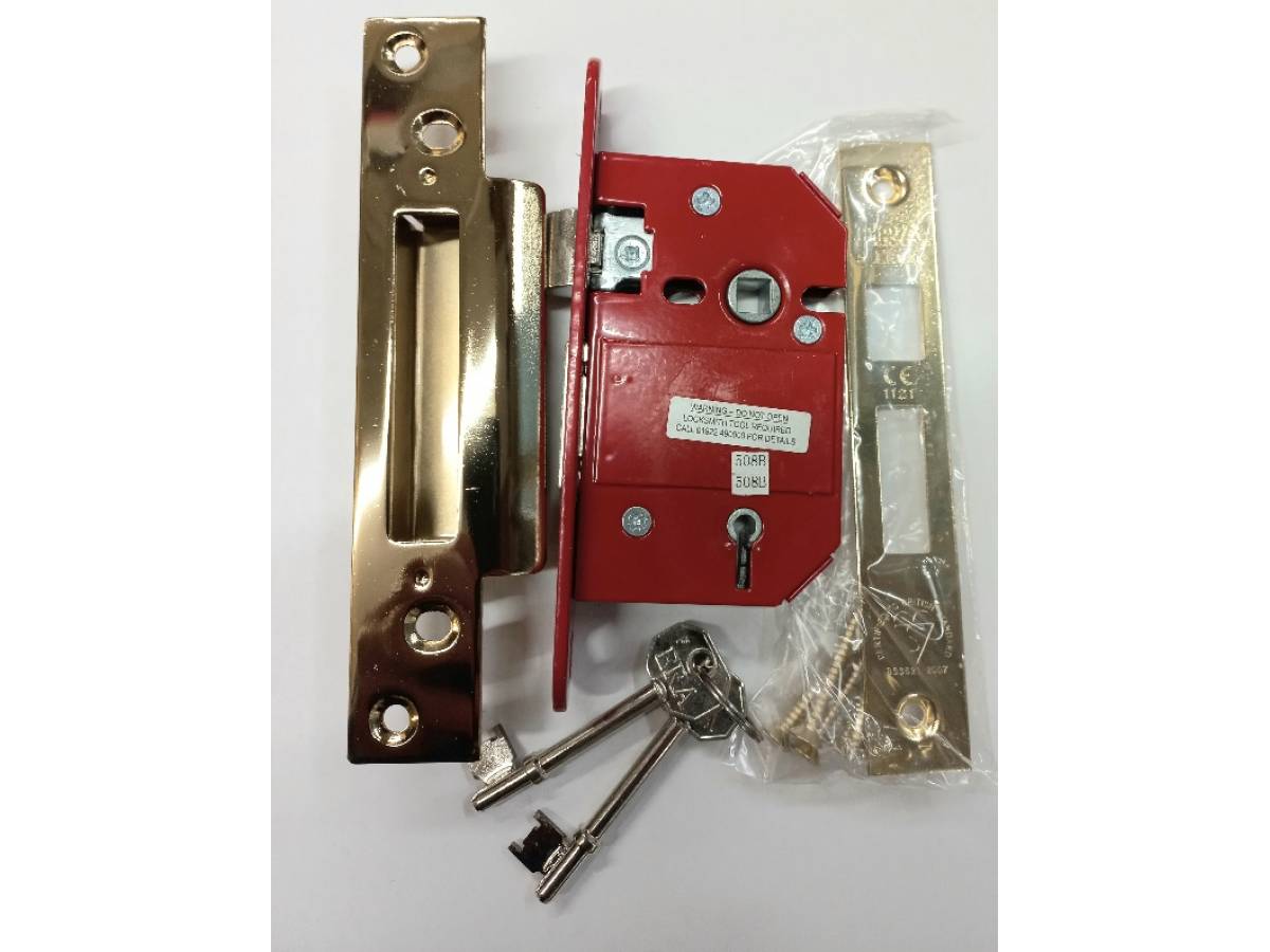 - 5 Lever Lock = Brass face plate and receiver, supplied with keys and screws. BS 3621:2007 BBritish Standard Lock High Security.