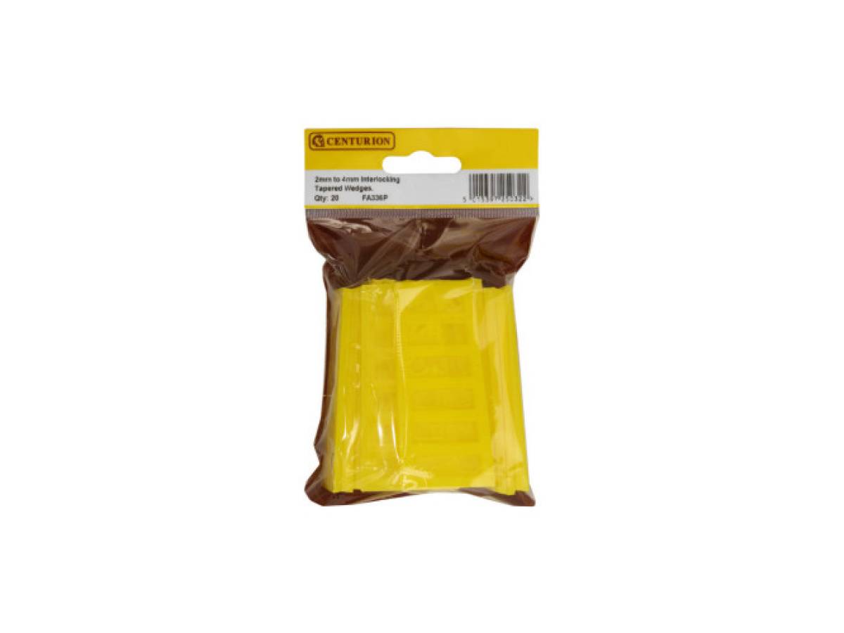 Ideal for the installation of windows, flooring and door frames. Size: 2-4mm taper. These tapered wedges are generally used for the installation of windows, flooring, worktops, door frames and many other applications. Durable and resistant to varying temperatures and weather conditions and will not rot, shrink, crack or split.