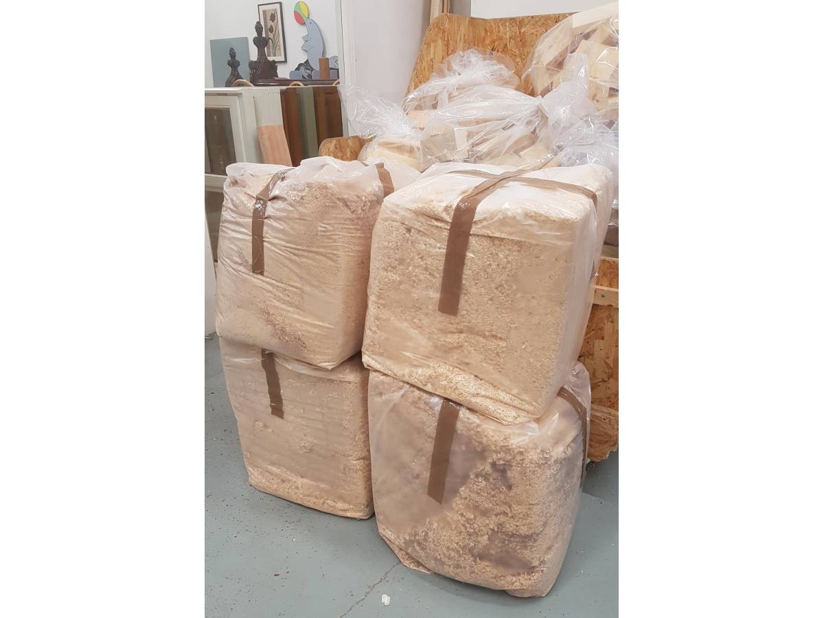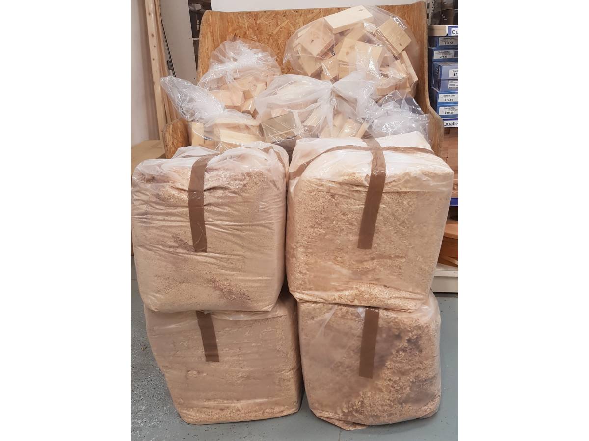 Bag of wood shavings. This is simply a bag of what gets removed by our extraction system during timber orders and joinery production. This is mostly softwood shavings and dust, but may include some hardwood dust, depending on what we have machined. The bags are around bin bag size and weigh between 20 kilos approximately. If collecting, you will be able to select the bag you want. Please note stock quantity fluctuates as these are hard to count, if you are needing a large amount of bags please check stock with us first.